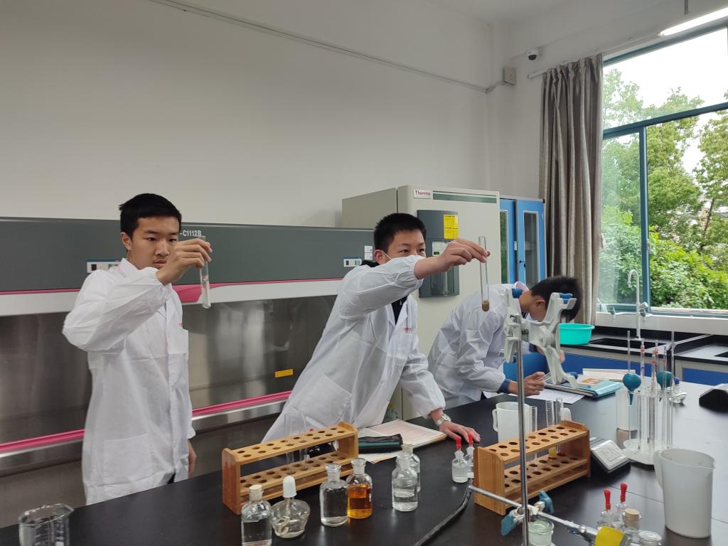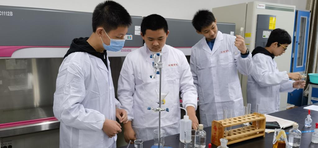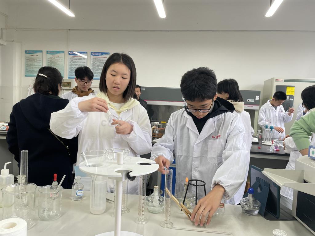 研学学生在化学实验室做实验(三)