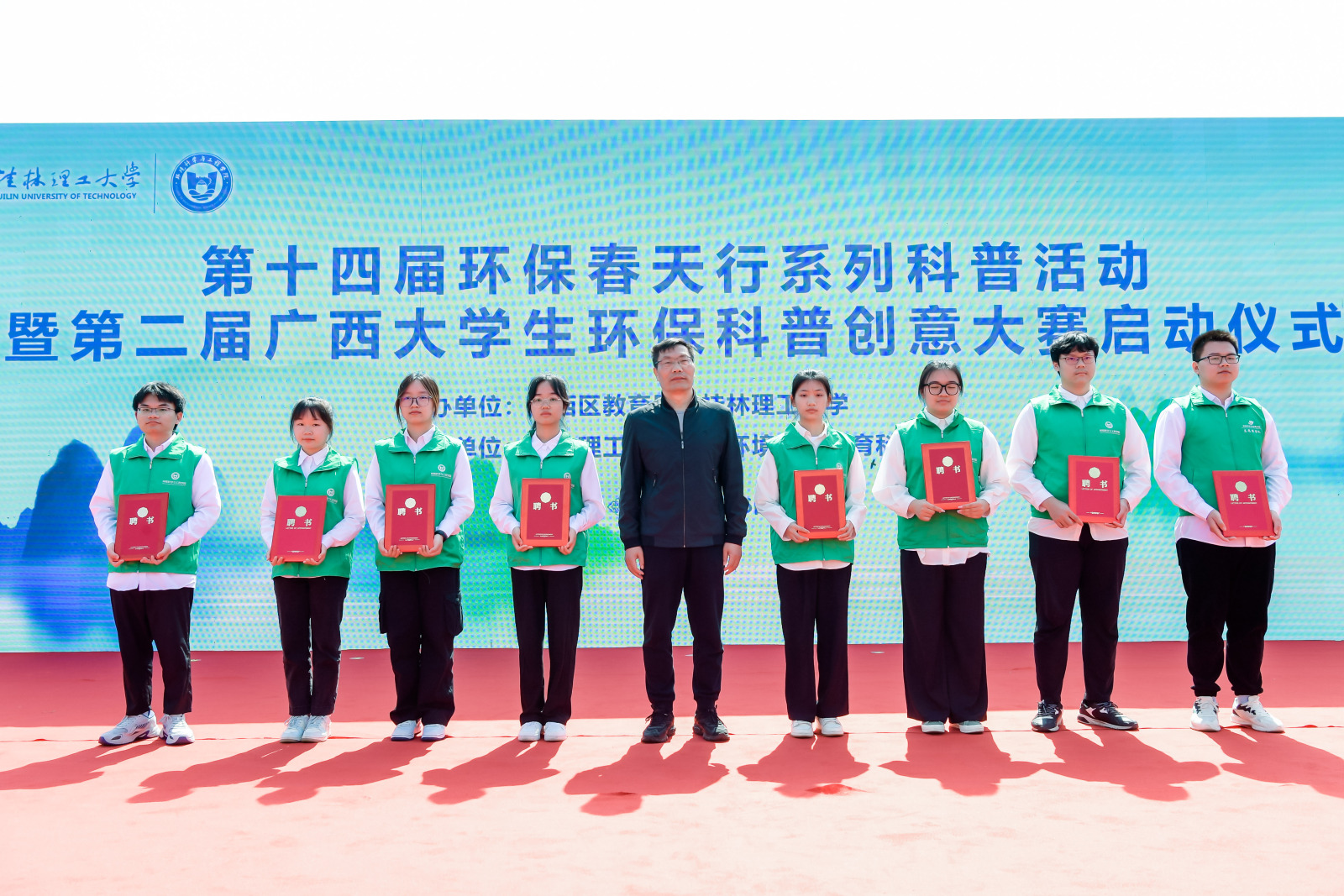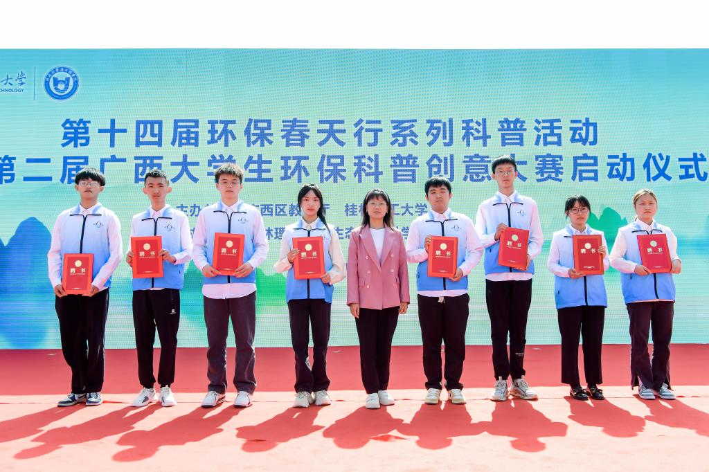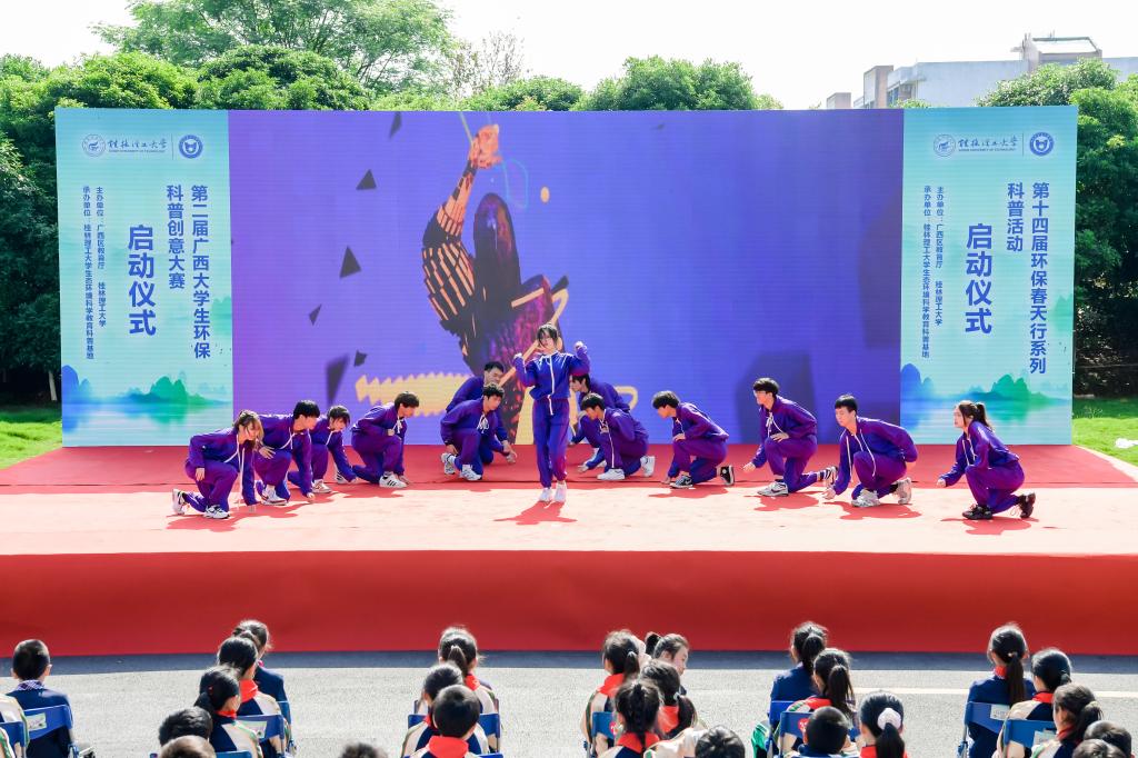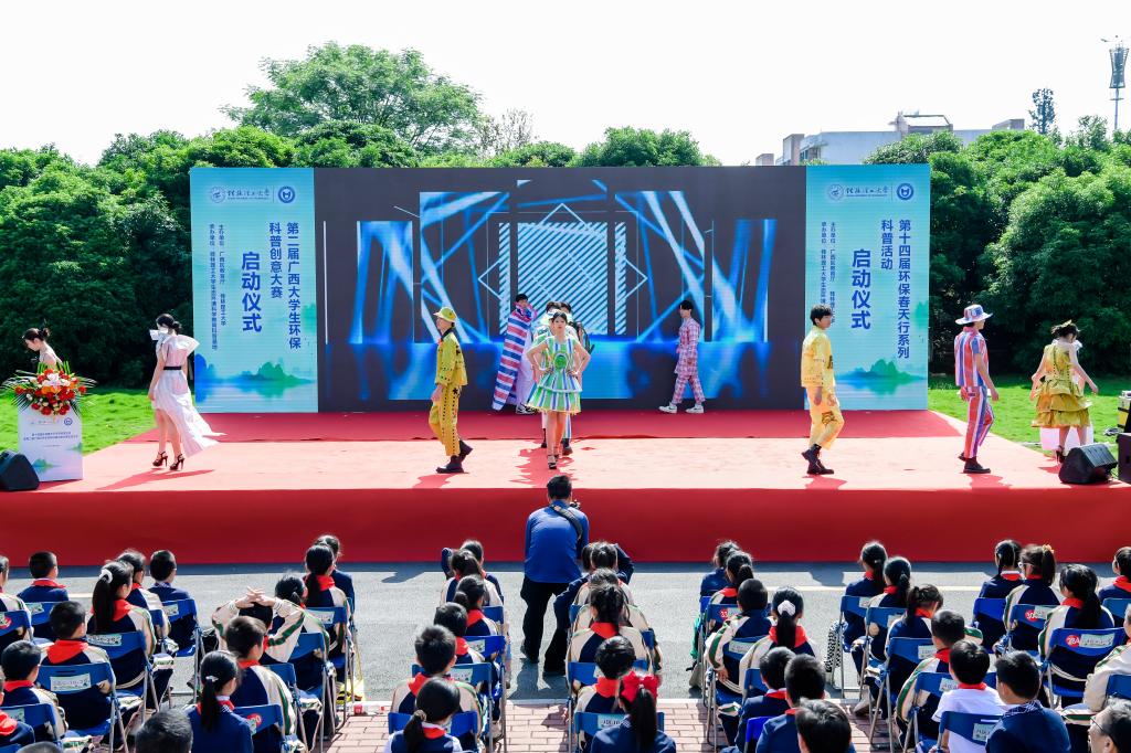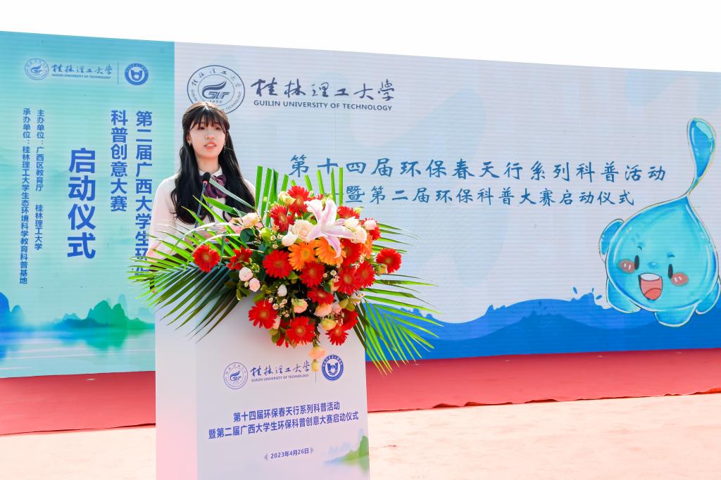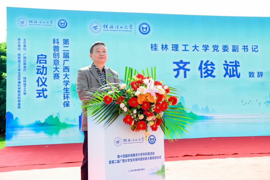 为积极宣传培育生态文明理念,践行习近平生态文明思想、提升大学生和广大市民环保知识素养,繁荣环保科普创作、促进环境科学知识的广泛传播、提升公民环境科学素质水平,4月26日,由广西壮族自治区教育厅和我校共同主办、我校生态环境科学教育科普基地承办的第十四届环保春天行系列科普活动暨第二届广西大学生环保科普创意大赛启动仪式在我校雁山校区15栋教学楼成功举办。学校党委副书记齐俊斌出席活动并在启动仪式上致辞。桂林市团市委学校部部长李楠,桂林市生态环境保护2138cc太阳集团官网入口所所长文善华,桂林市科学技术协会学会部部长秦聪,广西师范大学、桂林电子科技大学、桂林航天工业学院相关代表,学校教务处、团委等部门负责人,100余名环境相关专业本科生代表,80余名小学生代表出席参加本次活动。
