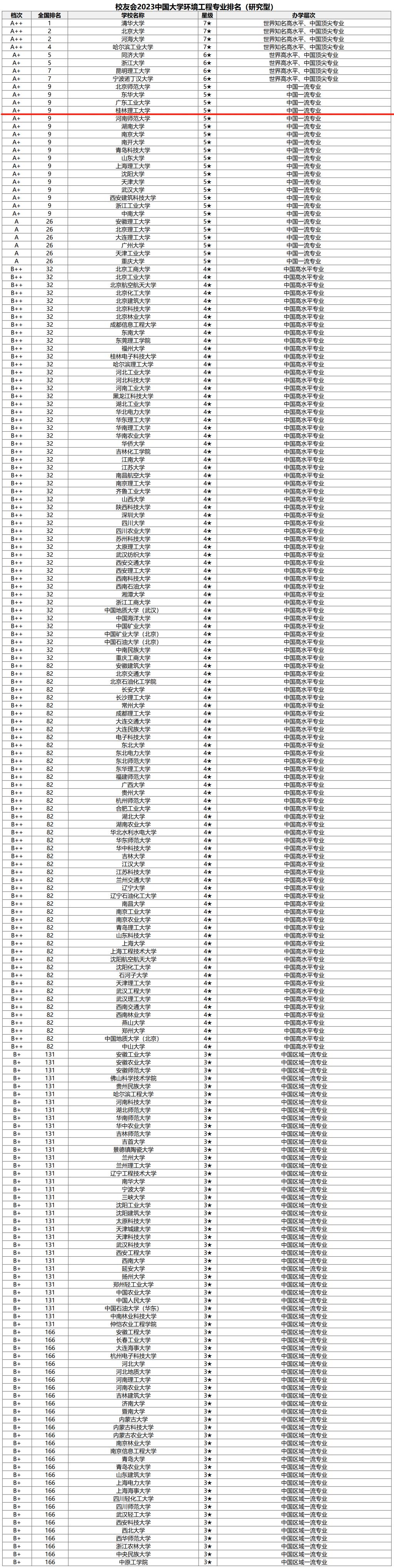校友会2023中国大学环境工程专业排名(研究型)榜单显示,太阳集团2138网址环境工程专业星级被评为5★,档次被评为A+,位列全国第9(全国约有400家高校设置环境工程专业)。