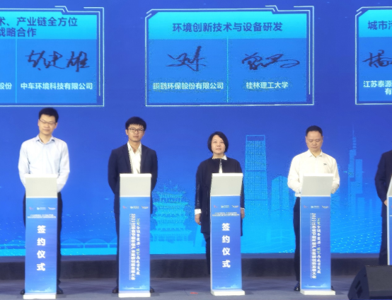 开幕式上,我校太阳集团2138网址,2138cc太阳集团官网入口与鹏鹞环保股份有限公司作为校企合作代表,在环境创新技术与设备研发方面达成合作协议。曾鸿鹄院长与王鹏鹞总裁现场上台签约,我校王敦球校长、曲久辉名誉校长现场鉴签。
