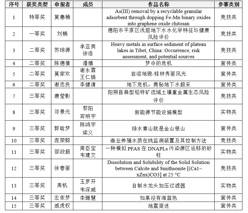 附件:2023年“水·工·环”科技竞赛获奖名单
