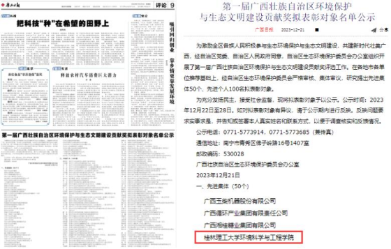 学院荣获第一届广西壮族自治区环境保护与生态文明建设贡献奖