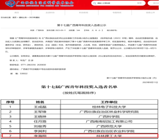 “双带头人”教工第二党支部书记李海翔获得广西青年科技奖