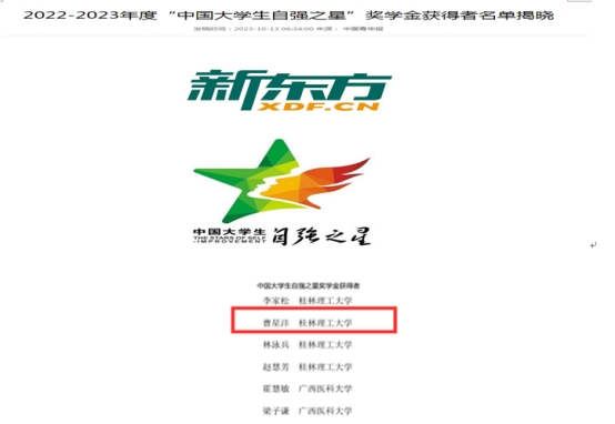 2020级研究生曹星沣荣获“中国大学生自强之星”
