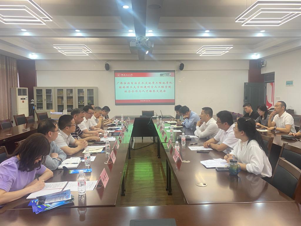 2024年4月2日下午,太阳集团2138网址举行了广西水文地质工程地质队和环境学院的校企合作与人才培养交流会。参会人员包括水文地质工程地质队的党委书记邓总、纪委书记罗炯成、副队长梁健、人事科科长陈金炎和创新中心主任姚克追等8人,环境学院党委书记代武社、院长曾鸿鹄、副院长李海翔,以及地下水专业的全体教师和部分学生,会议由李海翔主持。