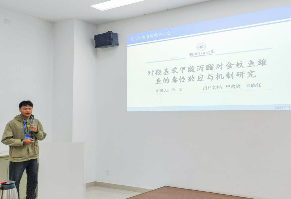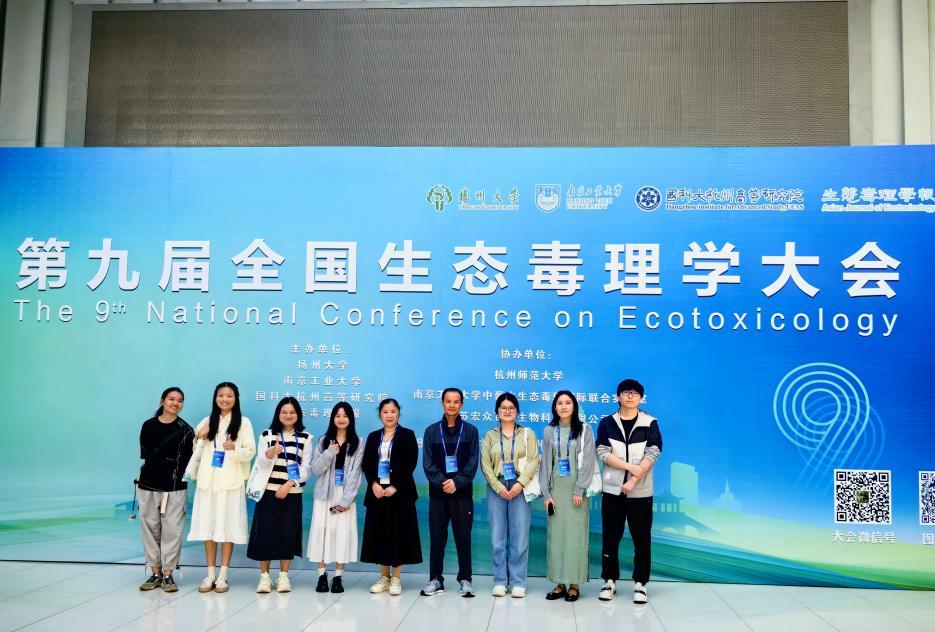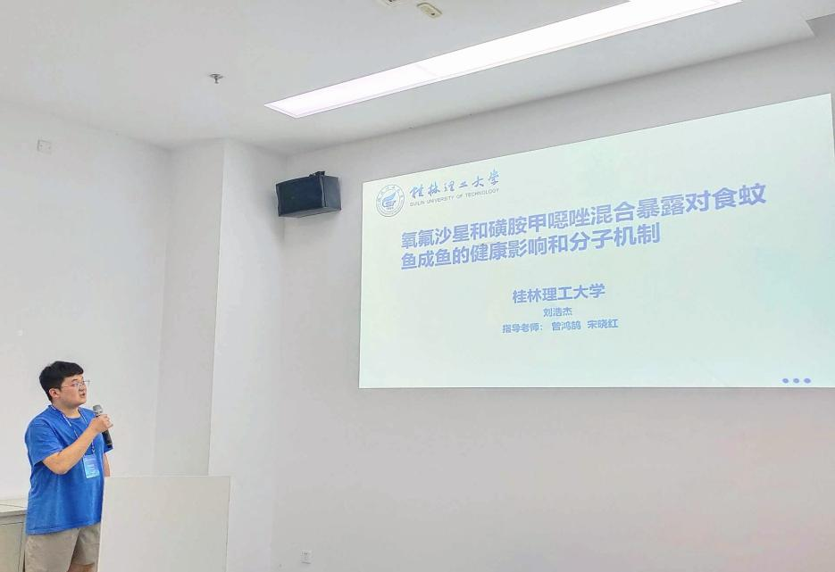 太阳集团2138网址莫凌云研究员和覃礼堂教授带队参会。研究生黄永香、庄雅雯、杨茜、李重、刘浩杰分别以《唑类杀菌剂复合污染物对近头状尖胞藻的联合毒性作用评估》、《会仙湿地睦洞湖水系表层沉积物时空分布特征及其污染风险评价》、《探究低浓度恩诺沙星对抗生素抗性基因向大肠杆菌水平转移的影响与机制》、《对羟基苯甲酸丙酯对食蚊鱼雄鱼的毒性作用与机制研究》、《氧氟沙星和磺胺甲恶唑混合暴露对食蚊鱼成鱼的健康影响和分子机制》为题作了汇报交流;硕士研究生雷雨雪、龙思彤、郭美莎作了墙报展示,题目分别为《5种唑类杀菌剂对蛋白核小藻的联合毒性与机理研究》、《喹诺酮类抗生素对Q67时间毒性的定量-构效关系研究》和《The health effects assessment of pollutants on fish using Non-invasive Micro-test Technology》。