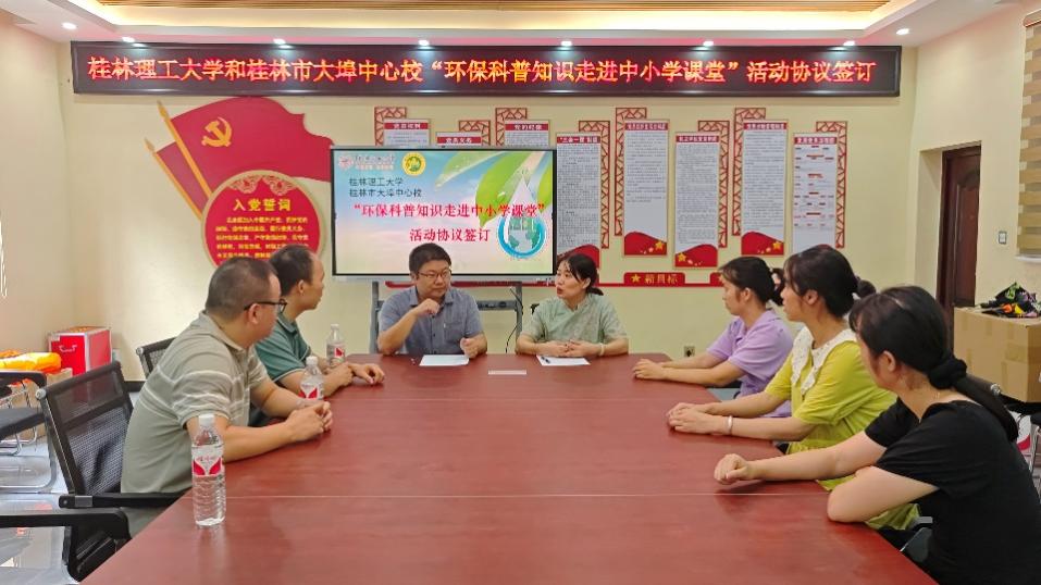 2024年全国科普日的主题是“提升全民科学素质,协力建设科技强国”。为深入贯彻落实习近平生态文明思想,弘扬科学精神,建设环保文化,传播绿色理念,9月19日下午,太阳集团2138网址举办了“环保春天行”系列活动之环保科普进小学。李海翔副院长带领太阳集团2138网址环保科普师生志愿者团队,前往桂林市大埠中心校开展环保科普宣传教育活动,本次活动共分为科普教育合作交流座谈、环保科普小课堂、环保科普小游戏3个环节。