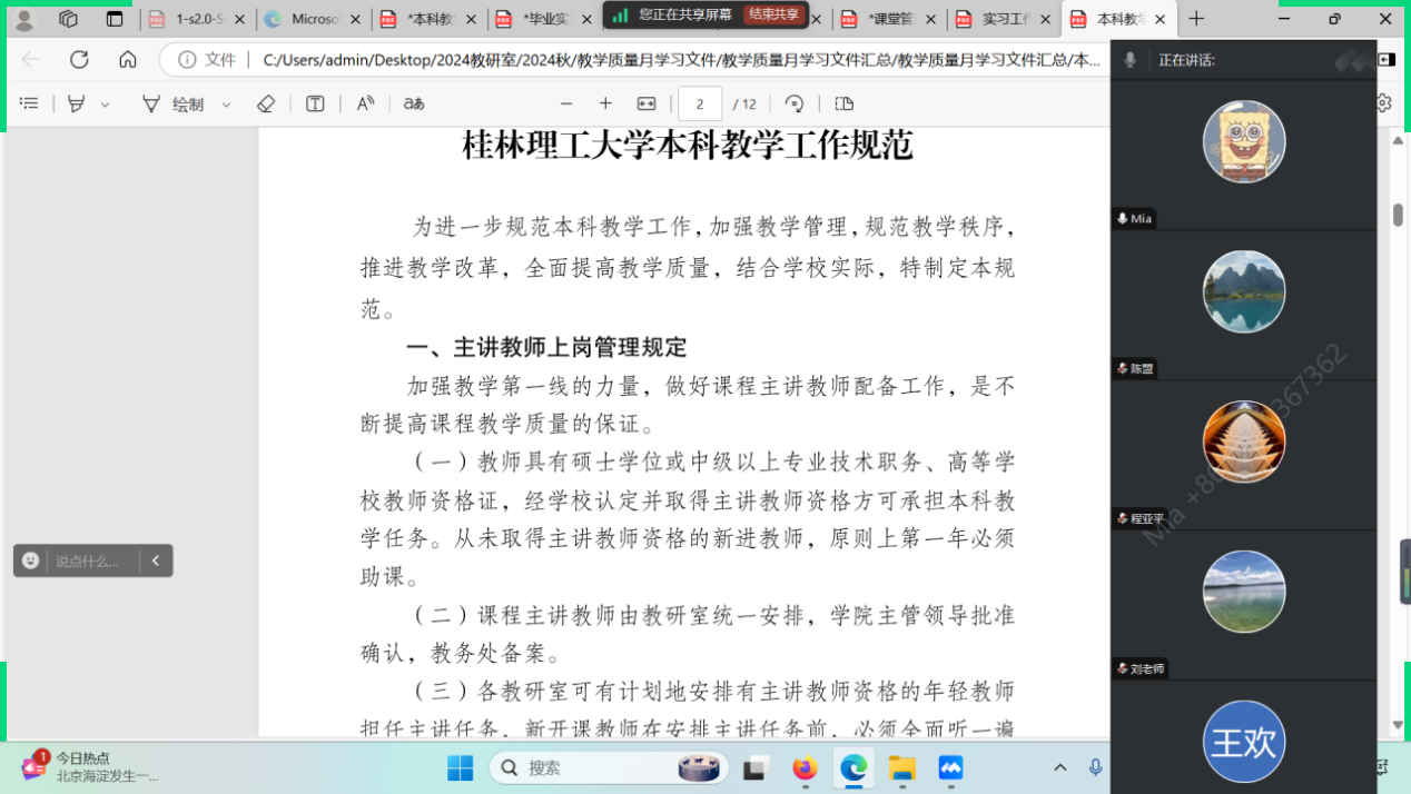 2024年11月1日,太阳集团2138网址,2138cc太阳集团官网入口地下水科学与工程教研室开展了2024秋本科教学管理制度专题学习交流会议。会议内容涵盖了教学工作规范、课堂管理规定、考试管理规定、毕业实习和毕业设计工作规范等多个方面。就如何更好地执行和完善这些规范,教研室全体教师通过线上、线下进行多次深入讨论和交流,旨在全面提高日常教学工作的规范性和实效性。