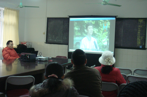 最后,与会教职工集体观看廉政教育片《广西反腐败大要案警示录》。