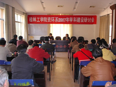 为加强学科建设规划,细化2007年学科建设目标任务,探讨进一步加快学科建设的措施途径,为升格大学和申报博士授予权奠定坚实基础,1月30日-31日,资环系在贺州市温泉宾馆召开2007年学科建设研讨会,学院研究生部部长刘康怀教授,学位办欧阳成甫教授,贺州学院副院长解庆林教授,资环系全体系领导、学科带头人、教授、教研室主任等30余人参加了会议。