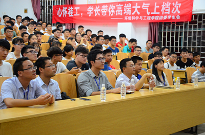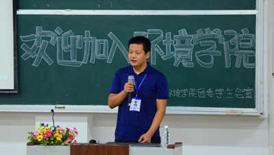 会上,学院老师与新生进行了亲切的自我介绍,之后学院党委书记王璐老师代表学院向2016级新生的到来表示热烈的欢迎和衷心的祝贺,他从大学宿舍生活的例子为切入点,运用诙谐幽默的语言将美好的大学生活为同学们娓娓道来,同时回顾了学院发展的历史,从学院教学师资力量、科研实践平台等方面介绍了学院的综合实力,他鼓励同学们要坚持理想和信念,鼓励大家积极参与科技创新活动,提高创新学习能力,并预祝大家有个充实的大学生活。 随后,环工教研室主任黄亮亮老师为环境工程专业新生带来了关于卓越工程师计划培养的解读。