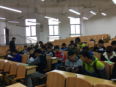 加强学风建设研讨会上,学院辅导员田明浩对近期学习、工作表现进行总结,要求学生干部要榜样领航,从宿舍风气、课堂纪律、文明礼仪等方面建设好班级学风,为营造良好的班级学习氛围而不懈努力。为增强学生对学校规章制度的深入了解,11月7日,学院组织2016级本科学生开展《学生手册》学习会,分集中、分散学习的方式对《学生手册》重点难点进行详细解读。为提升学生学习英语兴趣,加强英语水平,11月10日,组织全体2016级学生进行英语四级模拟考试。考前大家都积极踊跃复习,考试中,同学们以严肃认真的态度参加考试,以冷静的头脑从容答题。