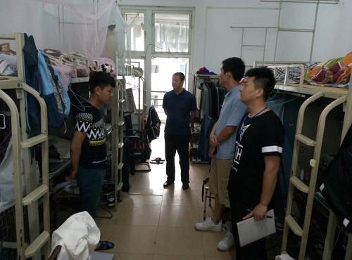 检查组深入到学生宿舍后6栋、5栋、21栋、23栋对宿舍安全、内务及卫生情况进行了重点检查。检查中少数宿舍仍存在脏乱差、乱搭电线等现象。针对宿舍卫生、用电及安全隐患存在问题,检查组就如何规范宿舍管理进行了具体指导,并严格要求同学们做好宿舍卫生和安全用电工作,自觉养成良好的习惯,杜绝安全隐患。在此次检查过程中,同学们主动配合检查工作,认真听取意见和建议并承诺会及时改正不足之处。走访过程中,王书记还亲切地与学生交流,仔细询问关心同学们的学习、生活等情况,反复强调寝室是学生生活学习的重要场所,要求同学们平时要注意遵守校纪、寝室安全,特别是防火、防盗,并对宿舍后内务等方面向同学们提出了明确具体要求。