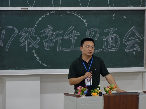 会上,学院老师与新生进行了亲切的自我介绍,学院党委书记王璐老师代表学院向2017级新生的到来表示热烈的欢迎和衷心的祝贺,他从大学宿舍生活的例子为切入点,运用诙谐幽默的语言将美好的大学生活为同学们娓娓道来,鼓励同学们要坚持理想和信念,鼓励大家积极参与科技创新活动,提高创新学习能力,并预祝大家有个充实的大学生活。