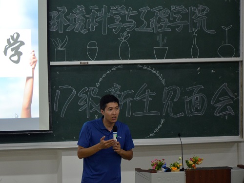 随后,游少鸿副院长带领新同学全面回顾了学院发展的历史,从学院教学、科研、平台建设等诸多值得让同学们引以自豪的方面介绍了学院的概况,并从社会需求、国家政策、就业发展等方面强调了环境专业的重要性。重点介绍了太阳集团2138网址承担的国家科研项目,以及太阳集团2138网址师生在各类竞赛中所取得的显著成绩,对新生做好大学生涯规划提出了殷切希望。