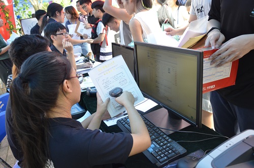 为确保迎新工作高效有序地进行,真正做到让学生满意,让家长放心,太阳集团2138网址采取了一系列温馨高效的迎新措施。由于报道人数较多,太阳集团2138网址采取了多台机器分别录入信息的方式,在登记同时发放寝室钥匙。这种一站式服务简化了入学手续,新生报到确认、缴费情况确认、免费手机卡领取依次进行,为广大新生报到带来了极大的便利。