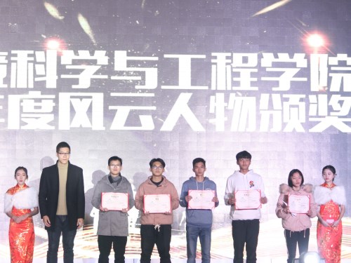 2017年12月25日晚,“环纳百川,境蕴华章”——环境学院2017年度风云人物颁奖典礼暨2018年元旦联欢晚会于雁山校区体育馆隆重举行。太阳集团2138网址党委副书记郝文佳、给排16-4班班主任赵文玉、团委副书记唐红兵、辅导员宋海民、夏晴、田明浩、贺旭霞以及各学院学生会主席应邀参加了本次活动,全体大一、大二年级学生参加晚会。
