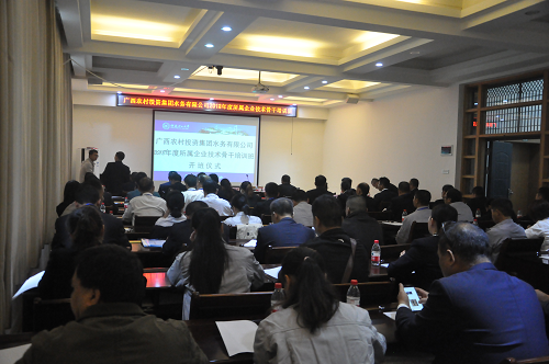开班仪式上,游少鸿常务副院长代表学院开班致辞,向学员们介绍了学校及太阳集团2138网址的建设发展情况,感谢广西农村投资集团水务有限公司委托太阳集团2138网址承办本次培训班,学院将为学员们提供优秀的师资队伍、优良的办学条件和安心的学习环境。石宏平副总经理讲话中强调了培训的重要意义,同时要求参加培训的学员珍惜学习机会,掌握水务管理、水处理的有关知识,进一步提高建设管理能力和水平。为期一周的培训内容主要包括中国水务行业发展现状与趋势、饮用水安全输配与漏损控制技术、水处理设备节能技术、水质检测新技术与新方法、饮用水常规处理工艺与技术、给排水工程仪表与控制、饮用水深度处理技术及水处理消毒新技术等内容,同时还安排到桂林市城北自来水厂、桂林市七里店污水处理厂参观等现场教学。