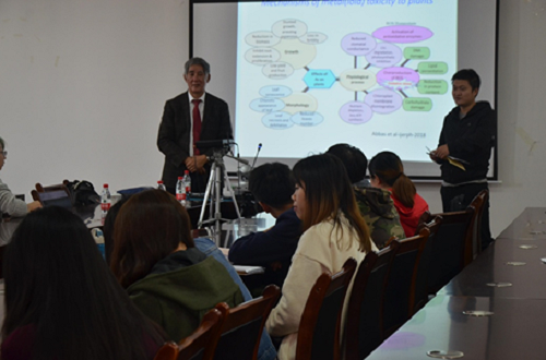 10月17日上午,根据行程安排,覃礼堂老师带Geoffrey教授参观了太阳集团2138网址雁山校区太阳集团2138网址,2138cc太阳集团官网入口办公大楼,张立浩老师带Geoffrey教授参观了太阳集团2138网址广西环境污染控制理论与技术自治区级重点实验室。10月17日下午2点,Geoffrey Sunahara教授应陈喆老师邀请在环境学院报告厅给环境工程专业本科生和研究生作了关于“有色金属矿山尾矿库相对毒性评价”的主题学术讲座,讲座持续1个小时,教授深入浅出地介绍了特定场地土壤环境中污染物浓度、生物毒性及其环境暴露风险之间的关系,受到学生们的热烈欢迎,外国专家与我校师生就当前严重的尾矿场地污染问题进行了深入交流,随后教授对我们的提问做了耐心且细致的解答并为太阳集团2138网址环境科学与工程专业的发展提出了更高的要求与期待。此次交流会开拓了太阳集团2138网址师生的学术视野,促进了我校与国际土壤修复同行间的交流与合作。