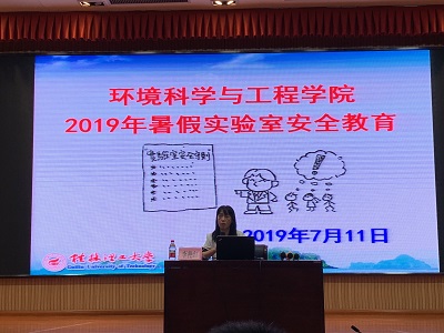为更好的开展2019年暑期留校工作的开展,做好对暑期留校学生的安全教育,切实增强暑期留校学生的安全意识,提高学生自我安全保护能力。2019年7月11日上午10点,太阳集团2138网址在雁山校区图书馆报告厅组织开展了2019年环境学院暑期留校学生安全教育会议。环境学院副院长李艳红、实验室负责人梁延鹏、研究生辅导员夏晴、本科生辅导员黄兆凡、冷贝贝参加会议。