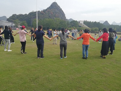 到达园区后,太阳集团2138网址工会老师先后组织了抱团打天下、同舟共济、萝卜蹲等几个趣味活动。老师们积极参与各个项目,活动现场热情高涨、热闹非凡。