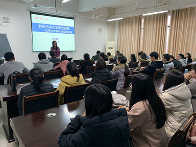 2020年1月3日,中国科学院生态环境研究中心博士生导师、清华大学环境学院教授、我校“八桂学者”刘会娟教授来太阳集团2138网址交流讲学,为2019级环境科学与工程专业研究生讲授《有机污染化学进展》课程。