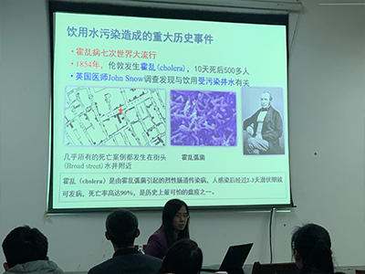 开课前,刘会娟教授与学生们亲切交流,了解学生们的科研规划和研究思路,分享自己的科研经验,为学生们在2138cc太阳集团官网入口和论文撰写方面提供了宝贵的经验和建议,并给予学生们充分的鼓励。课堂上,刘会娟教授以饮用水中有机污染物去除为主题,详细介绍了饮用水的常规处理工艺、强化常规处理工艺和几种典型的深度处理技术,阐述了不同工艺对饮用水中天然有机物和消毒副产物等新兴有机污染物的去除原理。刘会娟教授结合自己的科研经历,对饮用水的化学污染控制以及水质安全保障相关理论和技术体系做了深层次的分析,并提出了污水处理过程中将有价值的物质资源化的治理理念,使水处理工艺向着更安全、更经济的方向发展。授课结束后,学生们也积极与刘教授进行交流,表达了自己对饮用水安全的理解,以及学习本门课程后的收获。并将自己科研过程中遇到的困惑与刘教授进行了探讨,刘教授对学生的问题一一答疑解惑,使学生们受益匪浅。