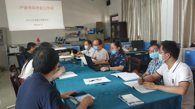 为进一步严肃考风考纪,营造和谐、公正的考试环境,确保期末考试各项工作的有序展开,水文教研室于6月19日在我校雁山校区12416召开严肃考风考纪工作会议,会议由教研室副主任汤珊珊老师主持,教研室全体老师参加。
