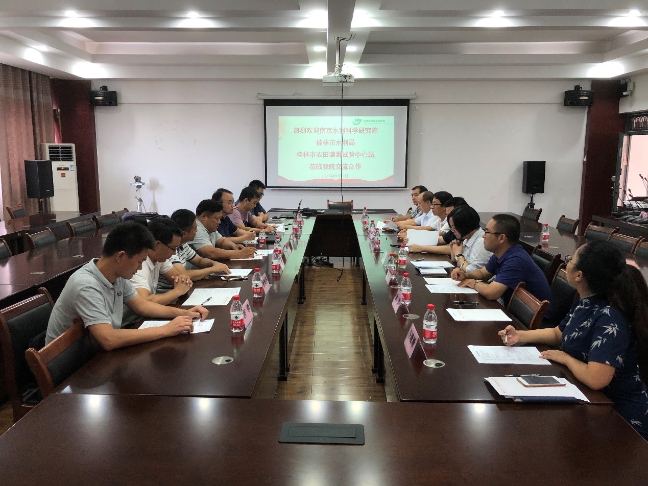 2020年9月17日下午,南京水利2138cc太阳集团官网入口院水文水资源所、桂林市水利局、桂林市农田灌溉试验中心站一行七人莅临太阳集团2138网址开展合作交流,院长曾鸿鹄、副院长林华、研究生院副院长代俊峰、水文与水资源工程教研室教师参加了此次会议。