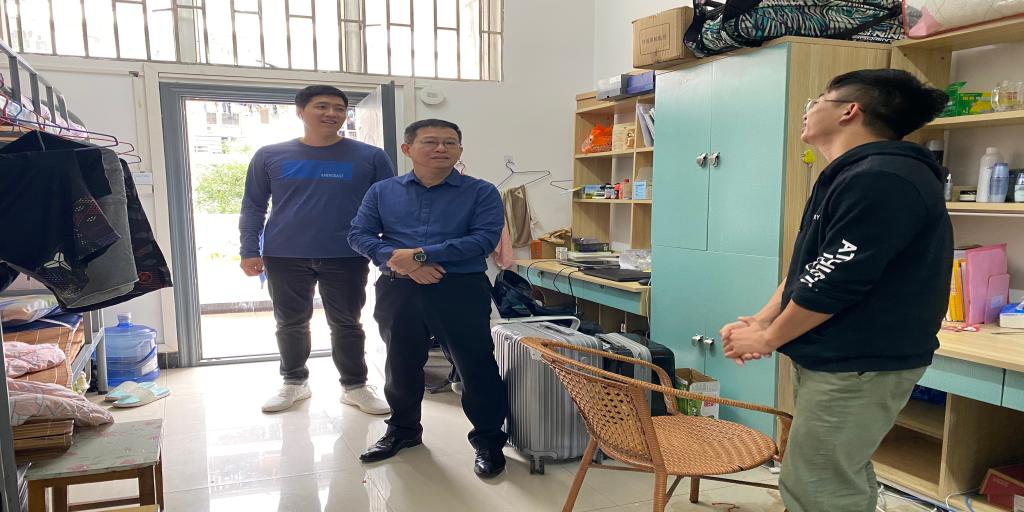 因临近国庆中秋假期,为进一步提高学生安全意识,排除宿舍安全隐患。9月30日上午,太阳集团2138网址,2138cc太阳集团官网入口党委领导姜子亮、曾鸿鹄、郝文佳、李艳红、林华、黄亮亮、辅导员老师陪同检查了研究生、本科生学生宿舍,对学生宿舍进行了安全隐患实地排查。