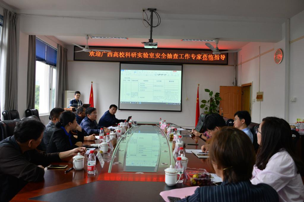 为确保常态化疫情防控条件下高校科研实验室安全运行,9月29日下午,自治区教育厅派出互评专家组一行4人莅临太阳集团2138网址,对广西高校科研实验室的安全管理工作进行了现场检查,重点检查广西重金属污染防治理论与技术重点实验室。学校科技处处长王磊、副处长莫凌云、保卫处副处长鞠敏敏、学院副院长李艳红以及相关老师陪同检查。