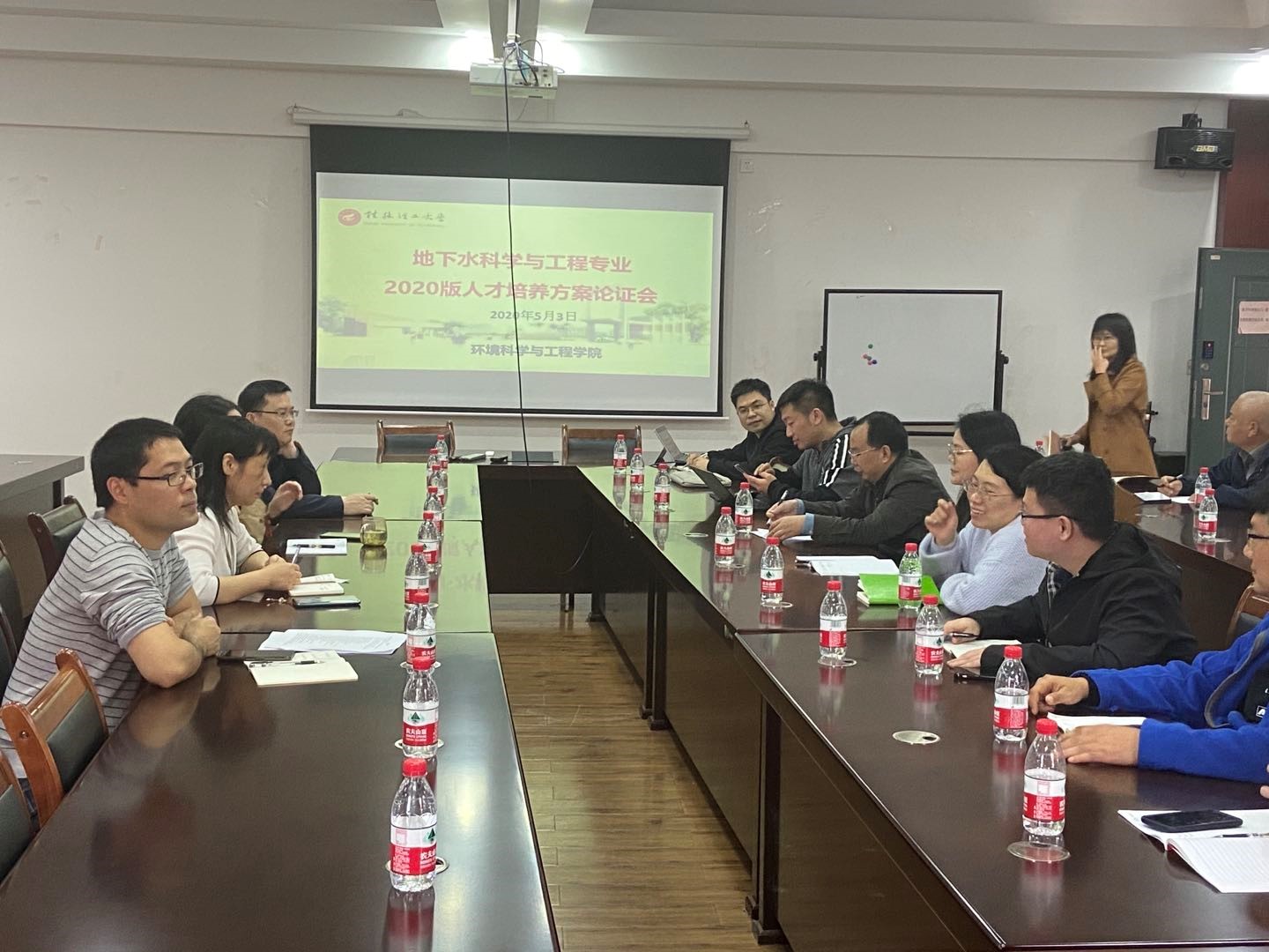 首先由地下水科学与工程教研室主任夏源老师介绍了专业2019版人才培养方案和2020版人才培养方案的区别与联系。学院领导强调2020版人才培养方案修订要根据《普通高等学校本科专业类教学质量国家标准》和《工程教育认证标准》进一步理清人才培养思路,合理构建课程体系,加强课程体系的整合,并指出应贯彻三全育人要求,积极加强课程思政建设,将思政教育融入所有课程。