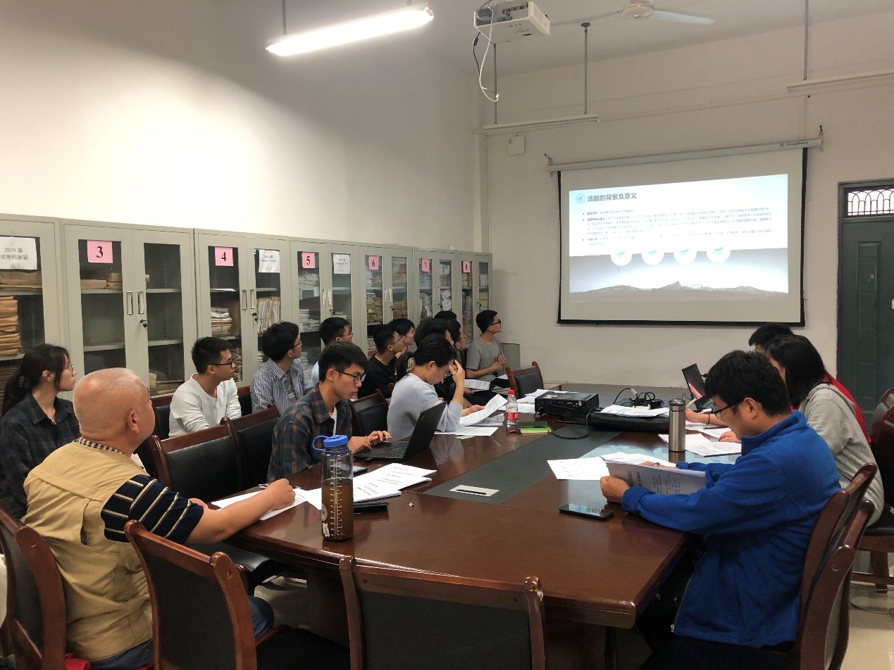 答辩会程序严格依据我校本科生论文答辩程序。首先由答辩秘书宣读答辩规则;随后由参加答辩的学生对自己毕业论文开题报告以PPT的形式进行5分钟的展示;接下来,答辩组专家就该生论文开题中的内容向学生提出问题并给出建议;最后,待答辩学生将问题回答完毕后,答辩组专家对答辩学生开题情况进行评价打分。答辩秘书对答辩过程进行了详细的记录。答辩现场条理有序、讨论热烈。本次答辩会对于及时发现毕业生论文中的不足,提高本专业学生毕业论文(设计)的学术水平具有积极意义。