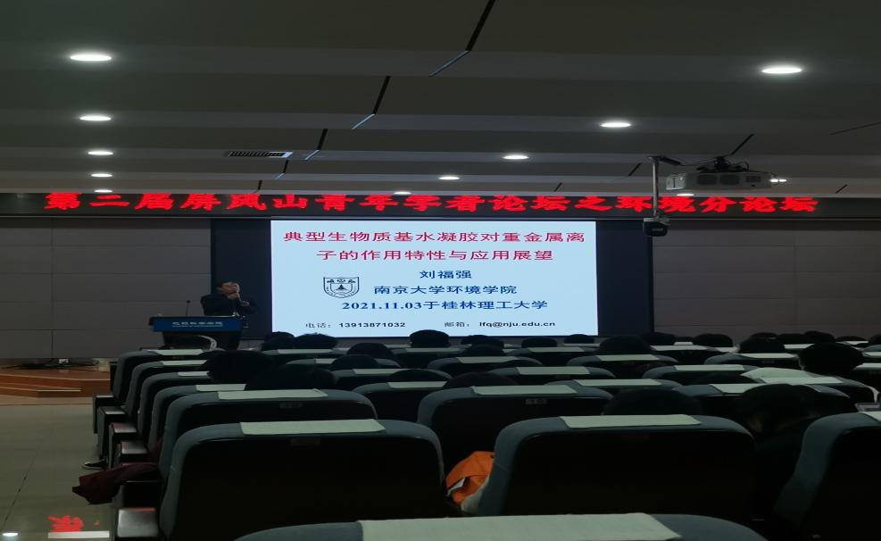 2021年11月3日下午,应学院邀请,南京大学刘福强教授莅临太阳集团2138网址进行学术交流,在雁山校区逸夫楼01501举行桂工讲坛第1346讲,讲座题为“典型生物质基水凝胶对重金属离子的作用特性与应用展望”。太阳集团2138网址师生到场学习与交流经验。
