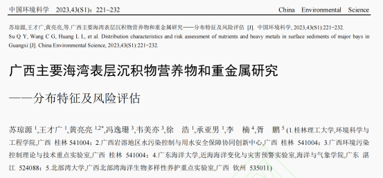 论文推荐│广西主要海湾表层沉积物营养物和重金属研究——分布特征及风险评估