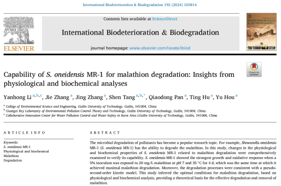 该成果发表在International Biodeterioration & Biodegradation.192 (2024) 105814