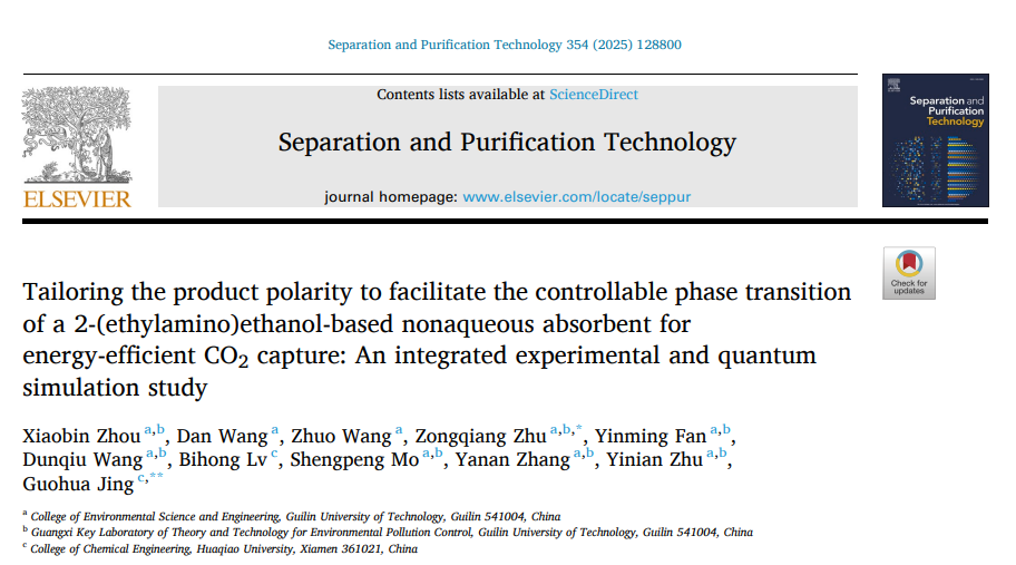 该系列研究工作得到国家自然科学基金——叔胺调控无水复合胺相变吸收CO2机理及传质-反应动力学研究(编号:22366012)和国家自然科学基金——新型二氧化碳吸收剂的固-液相变调控及反应机制(编号:22006027)以及广西省自然科学基金项目(Nos. 2023GXNSFAA026381和2020 GXNSFBA297071)的支持。