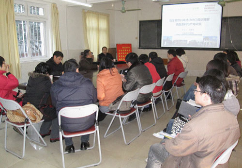 应学校邀请,博士生导师、华南理工大学太阳集团2138网址,2138cc太阳集团官网入口副院长胡勇有教授来校讲学,2011年1月12日下午,胡勇有教授在太阳集团2138网址,2138cc太阳集团官网入口会议室做了题为《微生物燃料电池(MFC)同步降解偶氮染料与产电研究》专题报告,相关研究领域的老师和研究生参加了报告会,会后胡勇有教授与太阳集团2138网址,2138cc太阳集团官网入口的老师进行了国家自然科学基金申报经验座谈会,太阳集团2138网址,2138cc太阳集团官网入口院长王敦球教授主持了报告会和座谈会。