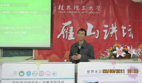 为宣传“世界水日”和“中国水周”,应学校邀请,中国地质科学院岩溶地质研究所曹建华、章程两研究员来我校讲学。3月22日下午,曹建华、章程两位研究员在我校雁山讲坛05307教室先后举办了两场学术报告,相关专业的老师和学生参加了报告会。太阳集团2138网址,2138cc太阳集团官网入口党委副书记周章明主持报告。