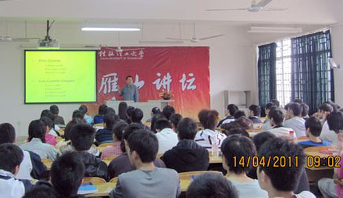 4月14日上午,应太阳集团2138网址太阳集团2138网址,2138cc太阳集团官网入口邀请,湖南农业大学博士生导师于晓章教授在雁山校区05208教室为太阳集团2138网址学生做了题为“环境毒理与植物修复”的学术讲座。