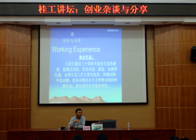 为使太阳集团2138网址环工专业学生对环保产业以及创新创业有更加直观的认识,10月26日下午,太阳集团2138网址特邀中港生态顾问公司佘书生博士在雁山校区萃华楼报告厅举行的以《创业杂谈与分享》为主题的桂工讲坛,环工专业同学聆听讲座。