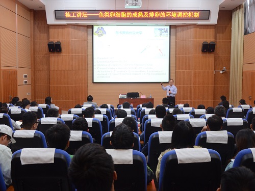 随后,朱勇教授在萃华楼报告厅做了题为“鱼类卵细胞的成熟及排卵的环境调控机制”的学术报告。讲座由游少鸿副院长主持,太阳集团2138网址党委书记王璐、部分青年教师、研究生和本科生近80人参加了此次讲座。
