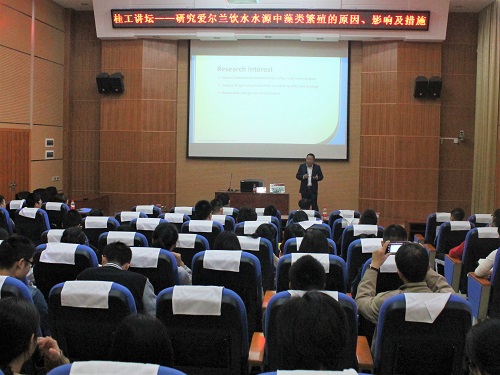 肖立文博士在报告中讲述了饮用水安全、河流生态修复、面源污染控制,污水能源回收等方面的研究,并为同学们阐述了爱尔兰饮水水源中藻类繁殖的原因、影响及措施:采用新技术对废水进行处理、农业活动对水质和生态的影响、可再生能源与环境的关系、从废水中提取能源、Vartry水库藻类繁殖等等。同学们感受到现代2138cc太阳集团官网入口需要各学科之间交叉应用。会后同学们积极发言提问,与肖教授进行了思想上的交流。