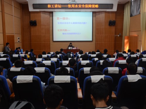 应太阳集团2138网址邀请,2017年12月1日上午,八桂学者、中国科学院生态环境研究中心刘会娟研究员在我校12栋报告厅作了题为“饮用水安全保障策略”的学术讲座。讲座由太阳集团2138网址主持工作副院长游少鸿教授主持,太阳集团2138网址部分青年教师及百余名本科学生聆听了本次讲座。