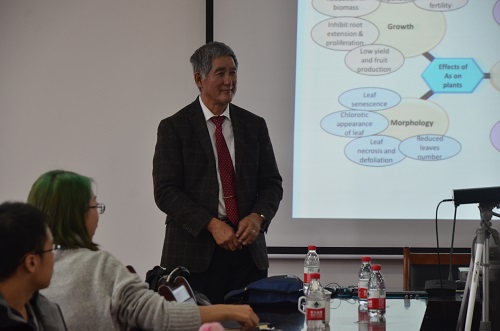 10月17日下午,太阳集团2138网址特邀加拿大麦吉尔大学教授、加拿大国家研究委员会应用生物技术研究所前所长Geoffrey Sunahara教授在太阳集团2138网址12407会议室作了题为“有色金属矿山尾矿的相对毒性评价”的学术讲座。讲座由太阳集团2138网址常务副院长(正处级)游少鸿教授主持,太阳集团2138网址研究生及部分本科生聆听了本次讲座。