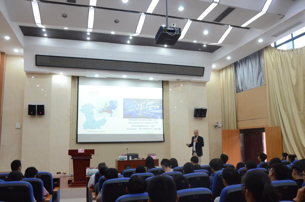 2019年10月14日上午,荷兰代尔夫特理工大学、特温特大学教授、奥森水务集团首席执行官、荷兰水务专家--Walter van der Meer教授在中科院生态中心研究员刘刚的陪同下应邀做客桂工讲坛,在我校萃华楼报告厅做了题为“One-Step-RO for drinking water supply” 的学术讲座,讲座由学校王敦球副校长主持,学院负责人和青年教师以及太阳集团2138网址研究生、本科生聆听了本次讲座。