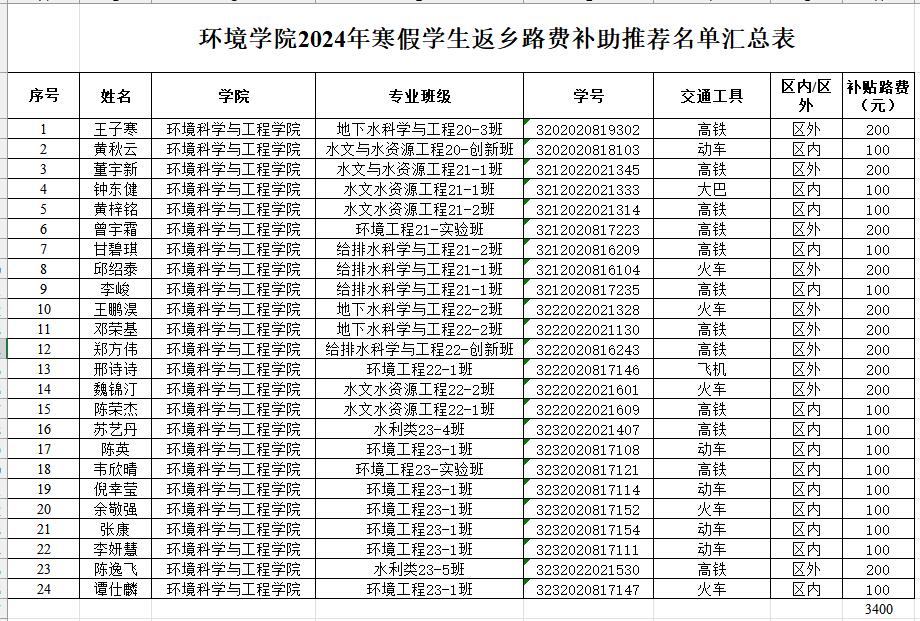 根据学校及学院相关要求,在学生自愿申请的基础上,经学院学生工作领导小组审核,现将太阳集团2138网址2024年寒假家庭经济困难学生返乡路费补助推荐名单公示。