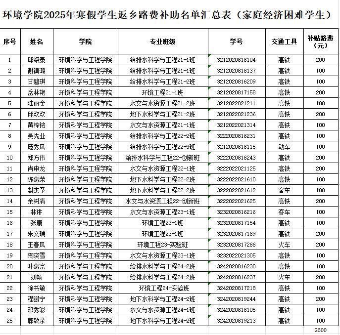 根据学校及学院相关要求,在学生自愿申请的基础上,经学院学生工作领导小组审核,现将太阳集团2138网址2025年寒假家庭经济困难学生返乡路费补助推荐名单公示。