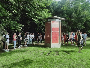 活动伊始,活动队伍参观了位于我校图书馆七层的校史馆,在校史馆志愿讲解员的带领下,环境学院毕业生党员对校六十周年回顾展进行了参观,通过陈列的照片、珍贵文件等形式,感悟母校悠久的历史积淀以及厚重的文化底蕴。随后,活动队伍来到了我校廉政园进行参观,分别从海晏河清、六面灯柱、慎微椅、古风浮雕字画四个部分,依次学习了“廉政”的内涵和要义。
