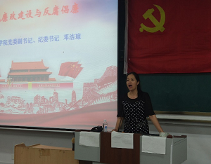 课上,邓洁琼老师首先从实质、目的、形式三个方面阐释了反腐倡廉的概念和意义,并指出党风廉政建设和反腐败斗争是党必须抓好的重大政治任务,强调学生党员要树立正确的三观,做到“四严禁”、提倡“五讲”,“六不准”,不断提高自己个人修养,廉洁修身。